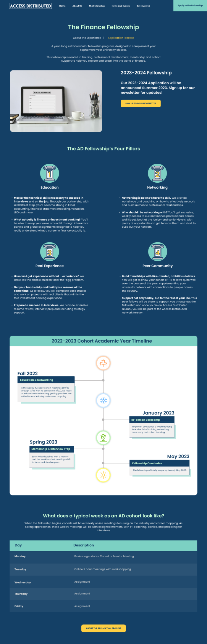 Company: Non-profit providing professional training and coaching to underrepresented students in finance