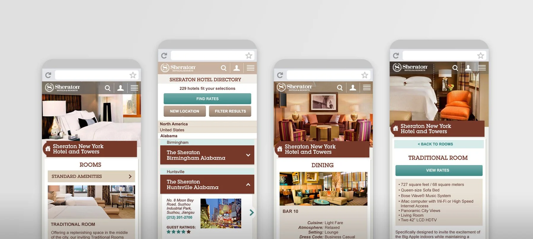 Production art for secondary pages of Aloft, Sheraton, W, and Westin Hotels websites